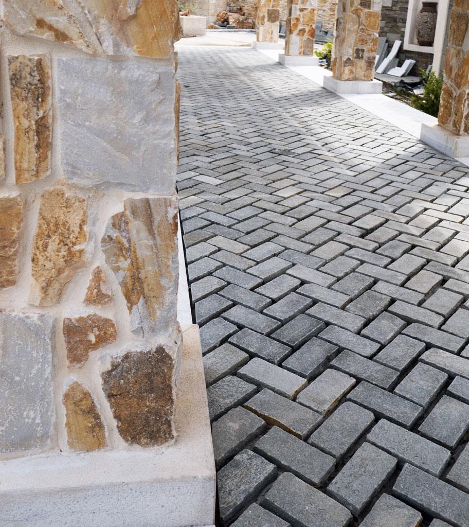 De leverer blandt annet belegningsstein , heller, kantstein og støttemurer.